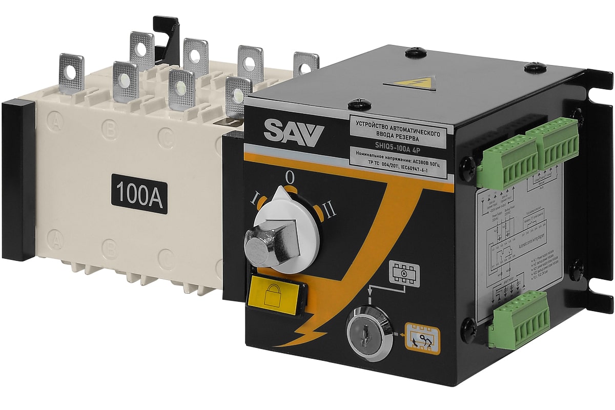 Технические характеристики Реверсивный рубильник АВР (устройство автоматического ввода резерва) SHIQ5-100A 4P 019923